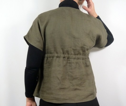 Le tissu choisi est un lin de mon stock : ce sont les chutes de ma veste Michelle façon Nénuphar que j’avais achetée dans la boutique Modes & Travaux située à côté de la gare St Lazare :