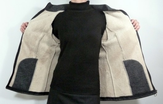 Comme vous pouvez le constater, cette veste-gilet n’est pas doublée, toutes les coutures d’assemblage sont donc apparentes (coutures réalisées à la surjeteuse) :