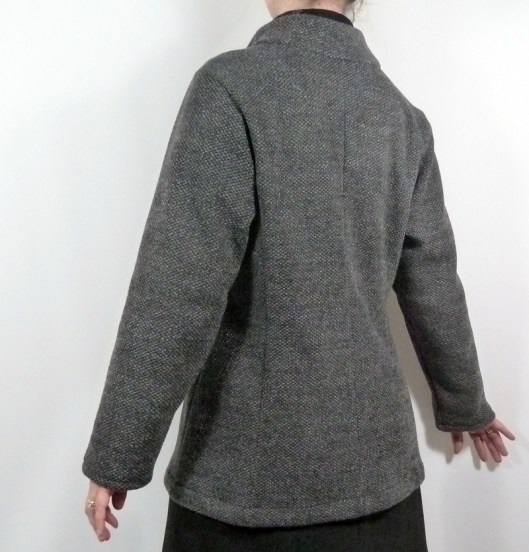 Comme vous le savez, les patrons Lekala sont ajustés à nos mesures personnelles. J’apprécie donc le seyant de ce gilet car les découpes du dos sont juste parfaites : moi qui ait toujours un excédent de tissu au bas du dos du fait de ma cambrure et de mon écart important entre taille et bassin, ici tout tombe parfaitement, les découpes épousent correctement ma courbure du dos.