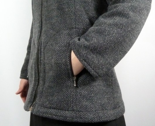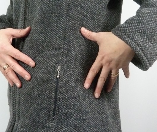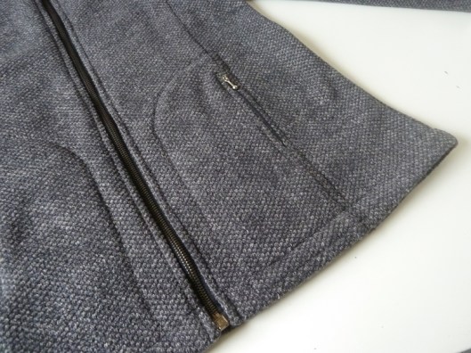 Le patron propose des poches passepoilées mais j’ai préféré faire au plus simple en cousant des poches zippées prises dans les découpes du devant.