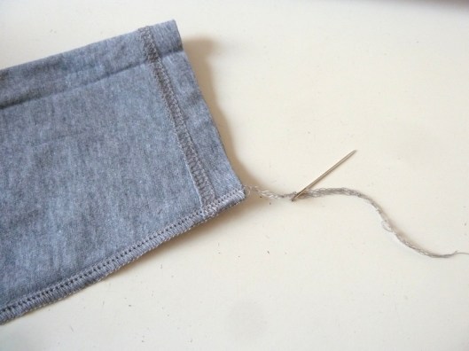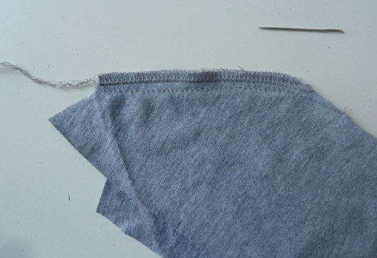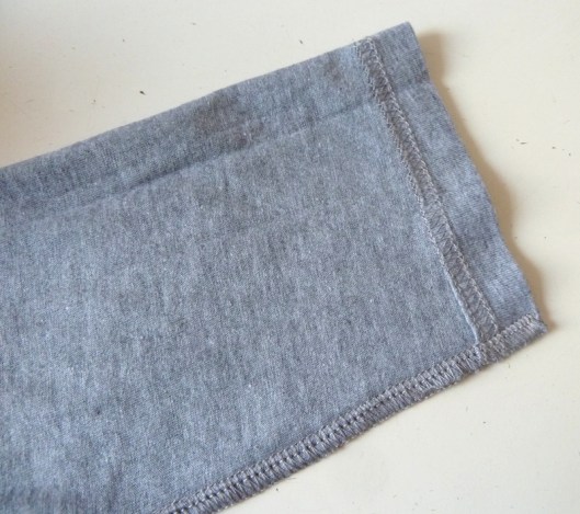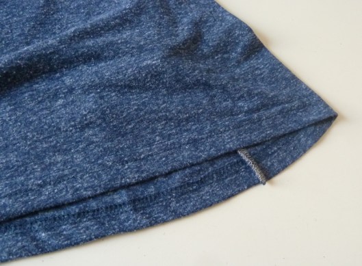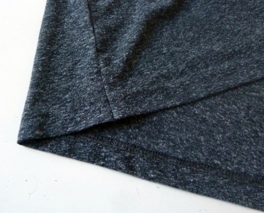 Côté finitions, j’ai juste rentré les fils du surjet avec une aiguille à gros chas. Ce n’est pas la finition d’ourlet que j’aime mais, vous l’aurez compris, j’ai préféré ici être rapide et efficace en exploitant les ourlets existants de ces t-shirts du commerce.