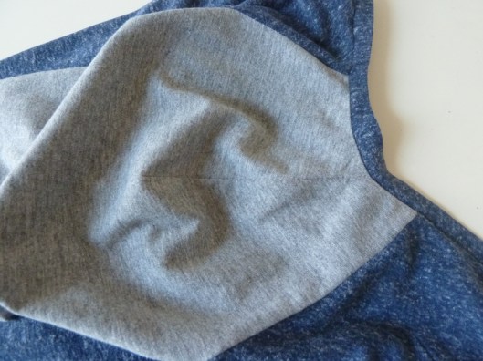 Parlons tout d’abord du tissu. Pour ces deux t-shirts, je suis en fait partie de deux t-shirts (identiques) du commerce de taille 3XL que mon mari ne portait pas. Alors… Plutôt que de les mettre dans la benne à recycler, j’ai préféré en faire des t-shirts ajustés à ma taille !