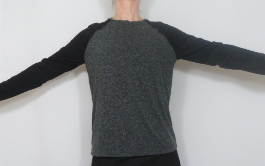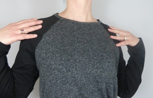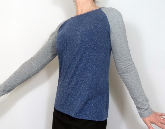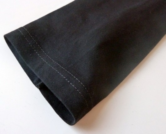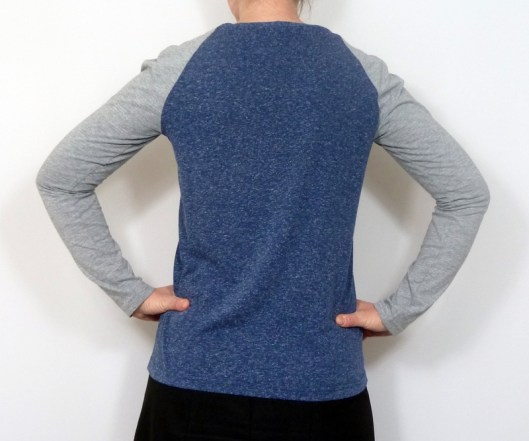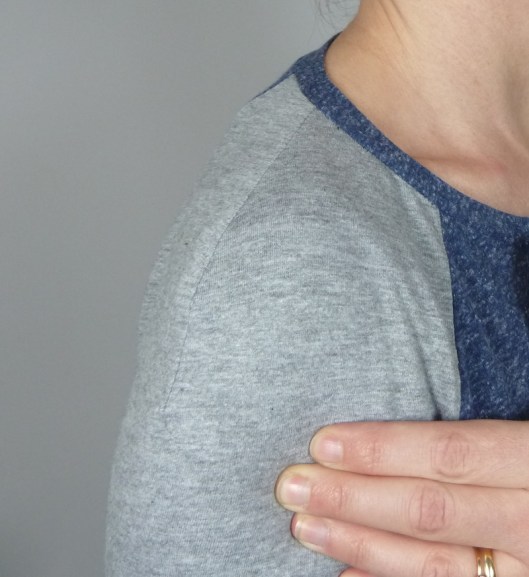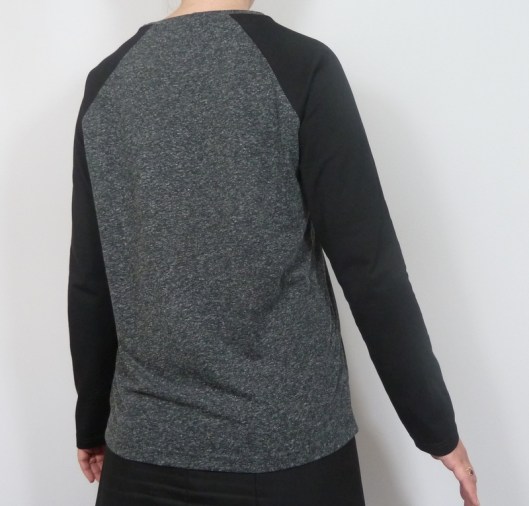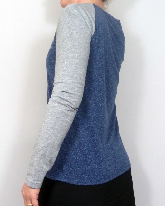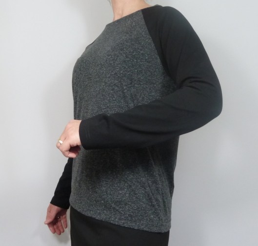 En toute objectivité, le fait d’avoir créer une manche raglan avec cette pince n’apporte pas grand chose au t-shirt, le risque d’y voir un défaut si c’est mal cousu est grand… Je suis quand-même contente d’avoir essayé, c’est le genre de détail que j’aime bien coudre une fois « pour voir » mais que je n’ai pas forcément envie de reproduire. Je préfère donc nettement les manches raglan de mon t-shirt Burda, qui elles n’ont pas de pinces et qui sont du coup beaucoup plus simples et rapides à coudre !