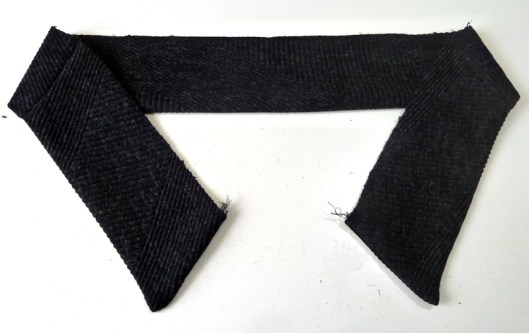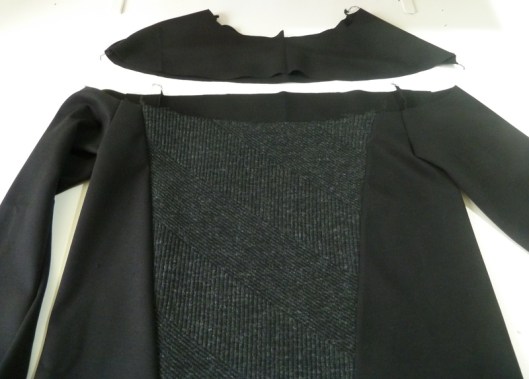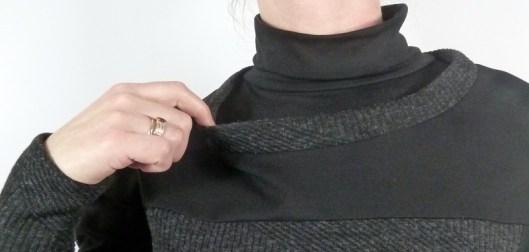 J’ai effectué une seconde modification : j’ai rétréci la bande d’encolure car elle était trop lâche et baillait donc un peu, ce n’était pas très esthétique…