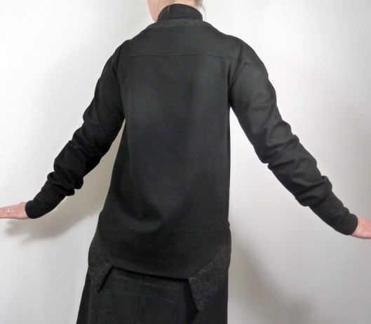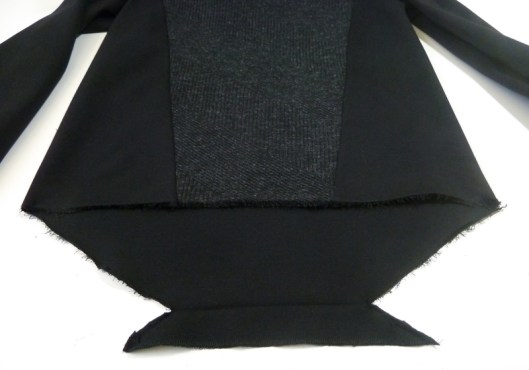 Bref, j’ai tout décousu puis coupé l’excédent. Ca ne me plaisait vraiment pas. Pour ce faire, j’ai coupé le dos à l’identique du devant, puis ai recousu une bande d’ourlet traditionnelle.