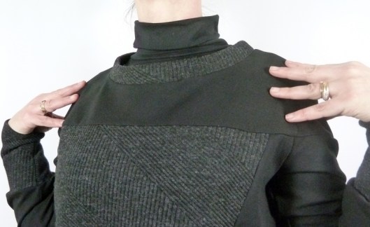 Autre originalité : les empiècements devant & dos qui emboitent les épaules : j’étais un peu sceptique au départ question mouvement des bras mais au final, ça n’entrave pas les mouvements.
