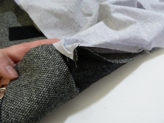 Pour lui donner davantage de tenue (je trouvais ce lainage trop mou), j’ai décidé de l’entoiler intégralement. Pour info, j’ai utilisé de l’entoilage thermolaine tissé que j’ai trouvé chez Fil 2000. Si ça vous intéresse, j’en parle ici.