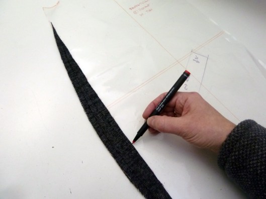 J’ai tracé la future ligne de couture sur mon manteau. Une fois la couture effectuée, j’ai découpé à 1 cm de cette ligne.