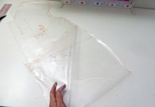 J’ai ensuite retracé correctement ma nouvelle ligne/courbe, en veillant à ce qu’elle soit harmonieuse et en respectant aussi les platitudes (emmanchures et bas de manteau) :