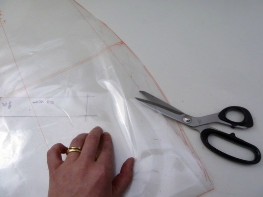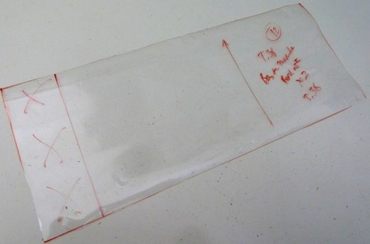 La ligne des côtés du devant et du dos étant identique, j’ai placé mes deux pièces de patron l’une sur l’autre et j’ai découpé mon surplus de matière :