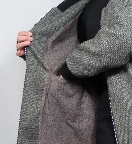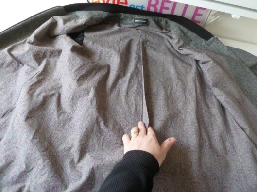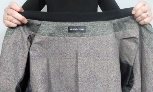 Puisqu’on est dans la doublure… Restons-y ! Voici l’intérieur du monteau : les finitions proposées sont soignées. La façon de faire est tout à fait académique, j’aime beaucoup cette technique.