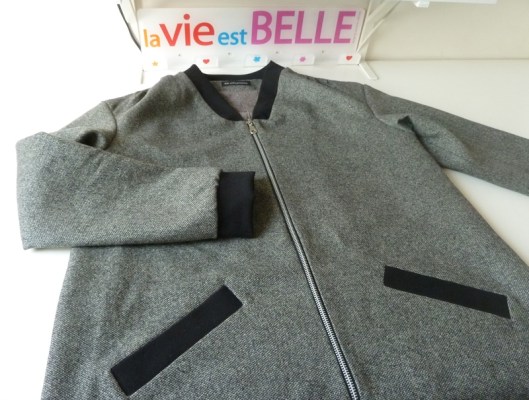 La veste se ferme au milieu devant par un zip. Je n’avais pas dans mon stock la bonne taille de fermeture éclair mais je me suis dit tant pis, ça ira quand-même… J’aurais également pu raccourcir mon zip en ôtant quelques maillons mais je dois bien avouer que j’avais un peu la flemme. Au final, ce n’est pas choquant mais c’est vrai que ça aurait été un peu plus esthétique si mon zip avait été un peu plus court…