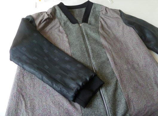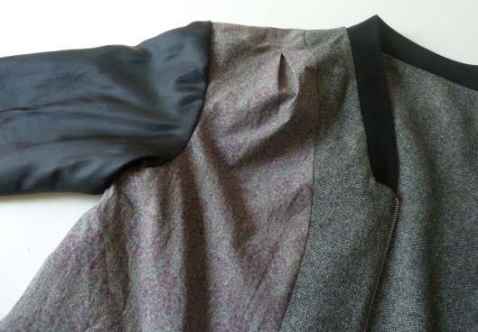 A noter que pour le corps j’ai pris une cotonnade (Eurotissus, 6€90 le mètre) et pour les manches une doublure satin :