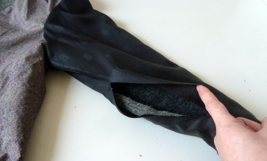 Pour retourner le manteau sur l’endroit, une ouverture est laissée dans la doublure d’une manche :