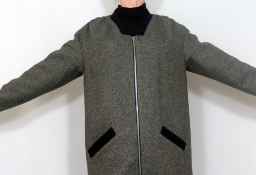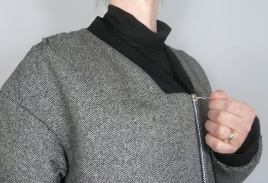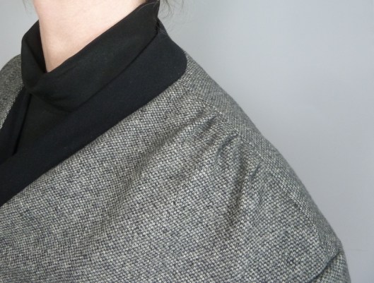 Au premier essayage, c’est à dire avant la pose de la doublure, je me suis rendu compte que la coupe « boule » de ce manteau n’était vraiment pas seyante sur moi, ça donnait un aspect bouteille d’orangina, ce n’était vraiment pas très flatteur…