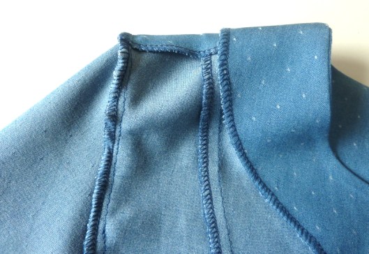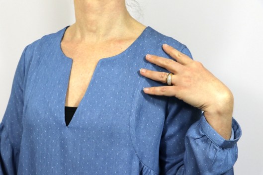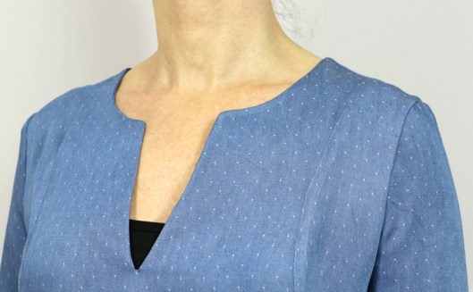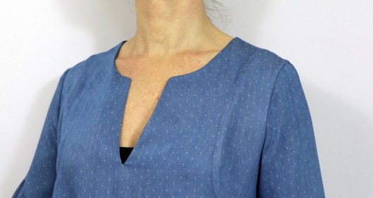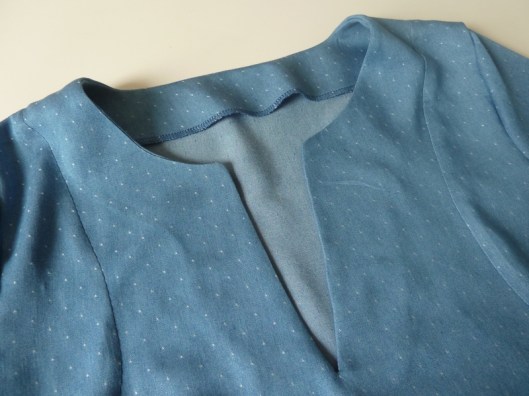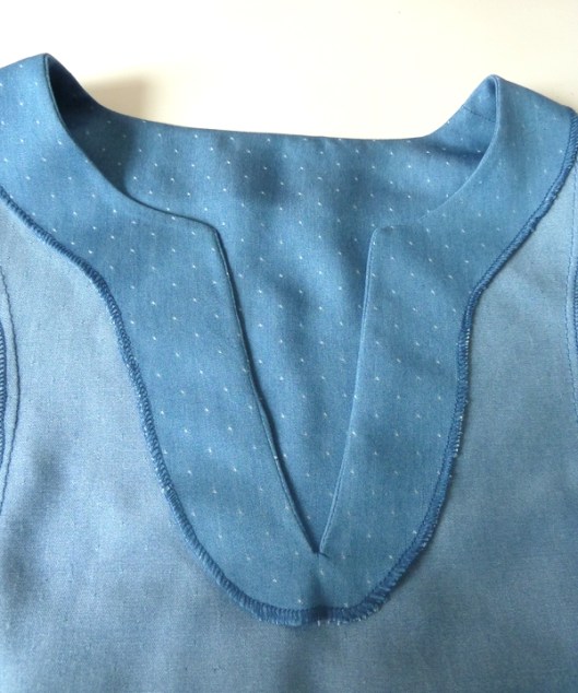 Le patron propose une jolie finition mais j’ai préféré coudre une parementure pour l’encolure devant & dos :