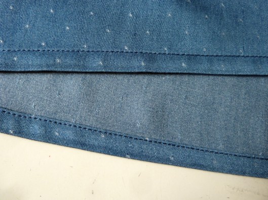 Pour l’ourlet, il s’agit d’un double rentré de 0,7 cm.