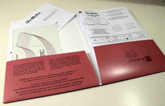 Le patron pochette contient : une planche en taille réelle, imprimée en couleur et un livret d’explications détaillées et illustrées. Un erratum est également présent dans la pochette : il s’agit de la parementure dos.