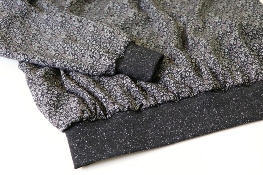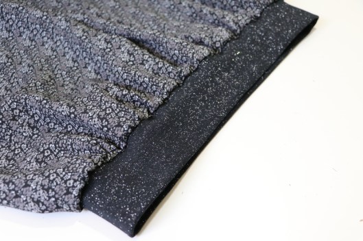J’ai choisi un bord-côte tubulaire noir pailleté de 75 cm que j’avais acheté l’année dernière dans la boutique Diffus’laine tissus à Saint-Nazaire : 7€16 les 50cm.