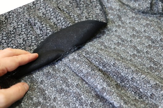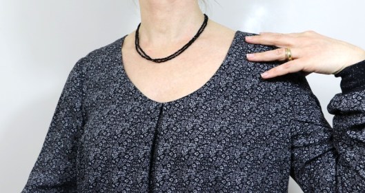 Pour maintenir la parementure en place, je l’ai fixée par quelques points au niveau des coutures d’épaule et j’ai fait une sous-piqûre, comme le prévoit les instructions de montage.