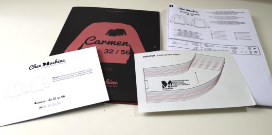 Voici la description de cette blouse par Chez Machine : « Carmen, une blouse ambivalente mais si facile à vivre : aussi urbaine que féminine, aussi élégante que confortable et aussi originale que rapide à coudre. Un décolleté délicat qui saura toutes nous flatter, des jeux de plis devant et dos et une finition bord-côtes. Côté look, « c’est la blouse qui fait du bien au moral », celle qui s’accordera avec tout et que tu ne voudras plus quitter. »