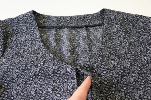 Pour maintenir la parementure en place, je l’ai fixée par quelques points au niveau des coutures d’épaule et j’ai fait une sous-piqûre, comme le prévoit les instructions de montage.