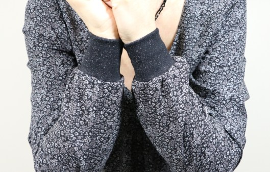 Pour info, je n’ai pas respecté les dimensions indiquées par les pièces du patron puisque mon bord-côte était tubulaire : je n’ai en effet pas voulu le couper pour avoir ensuite une couture d’assemblage à faire… Résultat, ça fait blouser un peu plus que ce que le patron prévoit mais ça me va très bien comme ça.