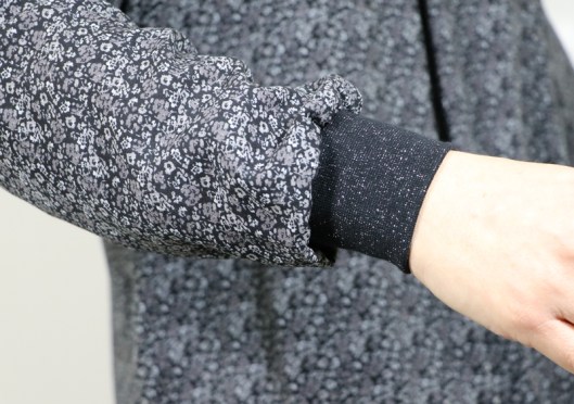 A n’en pas douter, ce qui fait l’originalité de ce modèle, c’est la finition bord-côtes : associer un tissu chaine & trame avec du bord-côte c’est une idée lumineuse ! C’est tout simple mais encore fallait-il y penser !