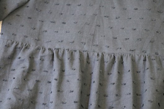 Pour ce faire, j’ai rétréci les côtés du bas du corsage de 12 cm au total pour ne pas avoir trop d’ampleur et de différence avec ma bande de taille qui mesure ici 13 cm X 75 cm. Au final, ça blouse encore un peu trop et puis j’aurais clairement dû raccourcir le corsage car je le trouve un peu trop long…