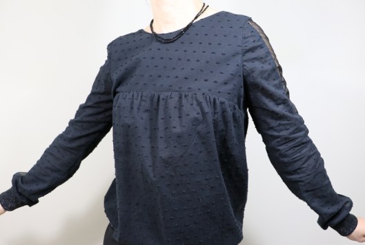 Le fait que l’empiècement devant soit placé juste au dessus de la poitrine, attention car ça peut donner du volume au niveau de la poitrine ! Perso, j’ai une préférence pour les blouses à la coupe taille empire (donc une découpe placée sous poitrine).