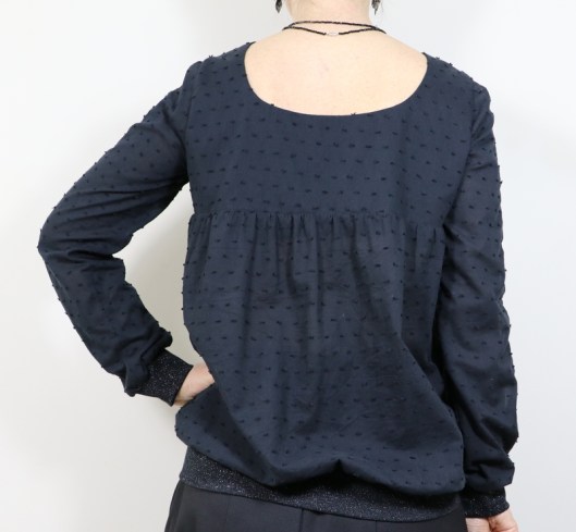 Au final je suis contente d’avoir été inspirée par la blouse Carmen, ce bord côte donne en effet un petit plus à cette blouse.