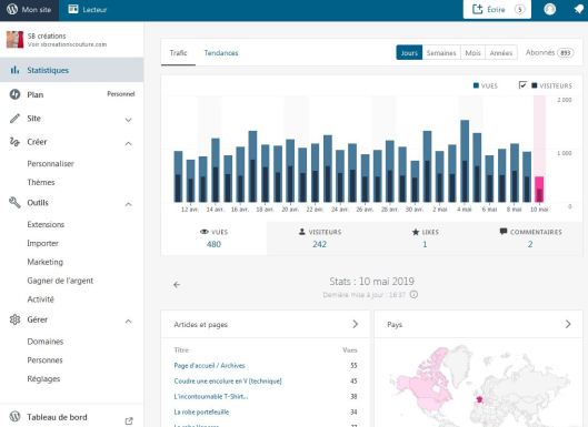Et pour finir cet article bien long, je termine avec WordPress, l’outil qui me permet de rédiger mes articles de blog. J’ai récemment décidé de retirer les publicités qui venaient alimenter mon blog. Pour info, ça m’a coûté 40 € (puis 48 €) et c’est à renouveler tous les ans (+ 18€/an nom de domaine).