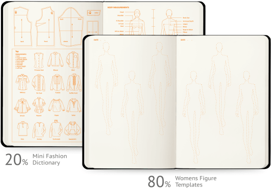 J’ai commencé par le carnet Fashionary qui permet de dessiner des croquis de mode (silhouettes pré-dessinées) mais je ne suis décidément pas faite pour ça… Si ça vous intéresse d’essayer, sachez que des templates gratuits sont à votre disposition sur leur site. Et puis, si le dessin de mode vous intéresse, ils viennent de sortir des cartes avec plusieurs silhouettes différentes « for every occasion », je trouve l’idée vraiment chouette !