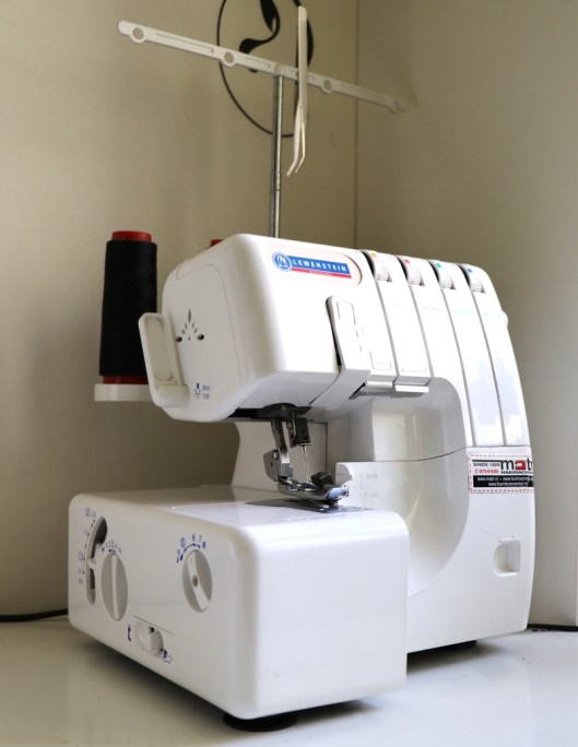 Acquise à mes débuts en couture, elle est toujours là, fidèle au poste alors que c’est un modèle plutôt premier prix. Je n’ai à ce jour remplacé le couteau que trois fois ! La prise en main peut dérouter car tout est manuel, que ce soit en terme d’enfilage ou de réglage de la tension des fils mais avec le temps on s’y fait.