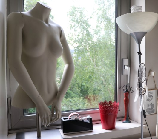 J’en ai 3 mais je ne les utilise aujourd’hui plus du tout. J’avais acheté à mes débuts le mannequin réglable premier prix proposé par La Redoute que j’avais rembourré pour qu’il corresponde plus ou moins à ma morphologie. Je ne recommande pas cet achat car ce mannequin a mal vieilli et s’est abîmé rapidement. Le deuxième trouvé en brocante (non réglable et aux mensurations trop grandes), m’encombre plus qu’autre chose, je l’ai donc mis à la cave…