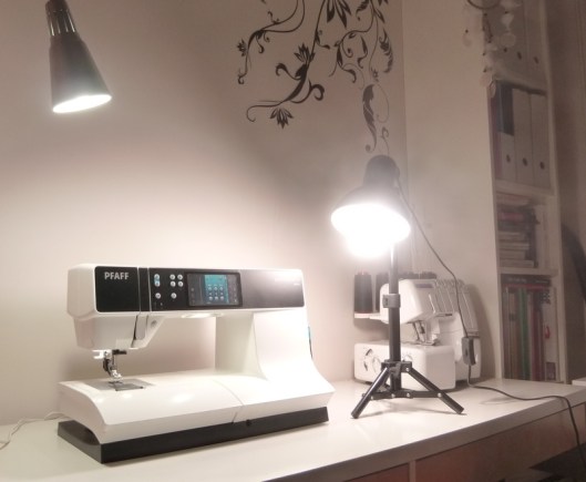 Suite à cet achat (plusieurs années après…) j’ai décidé d’investir dans des ampoules qui diffusent une lumière blanche, type lumière du jour = 5 500 Kelvin. Je ne sais pas vous, mais moi j’ai tendance à travailler le soir, un apport de lumière m’est donc indispensable pour y voir clair dans mon atelier, d’autant plus que je couds, comme vous le savez, beaucoup de tissus sombres !