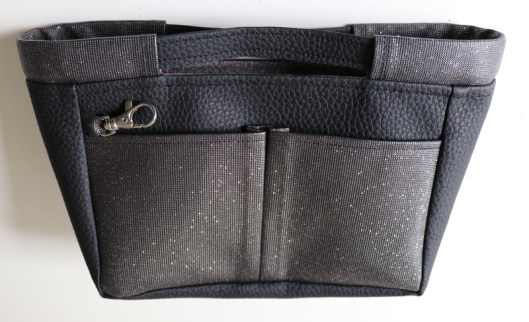 Parlons tout d’abord du premier, l’organisateur de sac dont voici la description faite par sa créatrice : « cette pochette de rangement modulable, à insérer dans votre sac, vous permettra de regrouper porte monnaie, porte feuille, clefs, lunettes, portable, maquillage etc. et toutes ces choses que vous cherchez régulièrement au fond de votre sac. De plus, il est super facile et rapide de la transférer dans vos différents sacs lorsque vous changez de tenue. » Dimensions : Largeur 29 cm, hauteur: 16 cm, profondeur 9 cm.