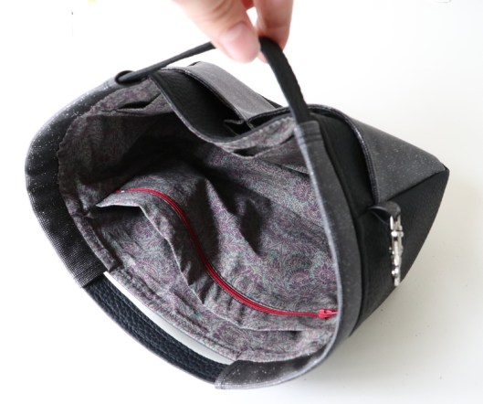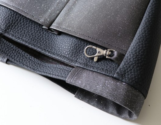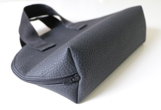 De fines anses permettent de porter facilement cet organisateur. Perso, j’ai dû réduire les dimensions et revoir le montage de ces anses car mon simili cuir était vraiment trop épais.