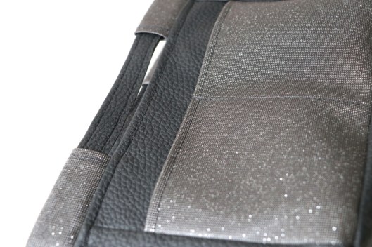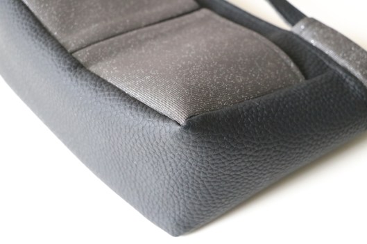 Il est proposé de renforcer le sac par la pose d’un entoilage thermocollant, ce que je n’ai pas fait puisque j’ai utilisé du simili-cuir légèrement texturé relativement rigide et du simili cuir Swarovski gris, les chutes de mon sac Mambo de Sacôtin.