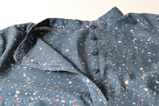 Pour ce qui est du tissu, j’ai choisi de coudre cette blouse dans la cotonnade Terrazzo Night d’Atelier Brunette que j’avais achetée en promotion en mai dernier (1m40 = 17,64€ au lieu de 22,40€) et que je suis allée récupérer dans la boutique Anna Ka Bazaar (qui va d’ailleurs bientôt fermer) :