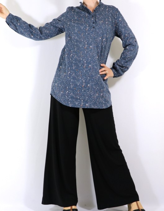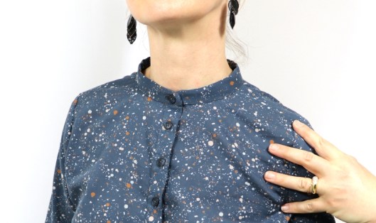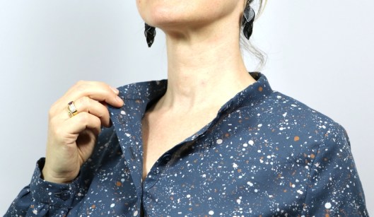Le col Mao qu’on peut fermer totalement mais je préfère tout de même porter cette tunique ouverte au devant :