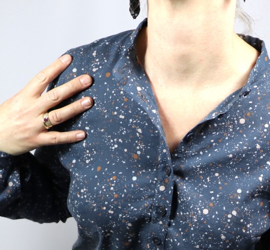 Comme indiqué plus haut, cette blouse, est à mon avis, un indispensable à avoir dans sa garde-robe. J’aime sa coupe et tous ses détails ! C’est ici ma 3ème version de ce patron (1ère version – 2ème version).