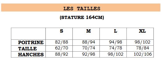 Autre point, le tableau des tailles fait mention du tour de poitrine (quel intérêt pour une jupe ?), de la taille et des hanches (bassin). Cette jupe-Short se portant taille basse, j’aurais aimé que cette mesure soit indiquée. Le cahier technique précise qu’il faut se mesurer juste au-dessus des os du bassin.