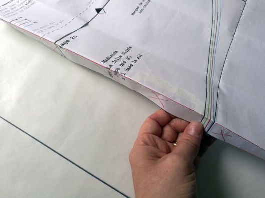 Pour ce faire, j’ai donc retiré 4 cm au bord supérieur et redessiné la fourche dos en veillant à obtenir une courbe harmonieuse.