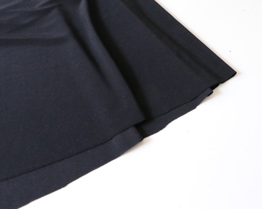 Côté tissus, ce patron est conçu pour du jersey (coton, tencel, viscose, spécial maillot de bain) et du lycra maillot de bain. J’ai pour ma part opté pour un jersey de viscose fin et fluide, parfait pour mon fond de jupe ! Par contre il n’est pas indiqué de taux d’élasticité… Pour info, le métrage nécessaire indiqué est : 90 cm x 150 cm. Comme vous pouvez le constater, j’ai allongé la jupe de plusieurs cms, j’ai donc eu besoin d’un métrage plus important… Mais on en reparlera plus bas.