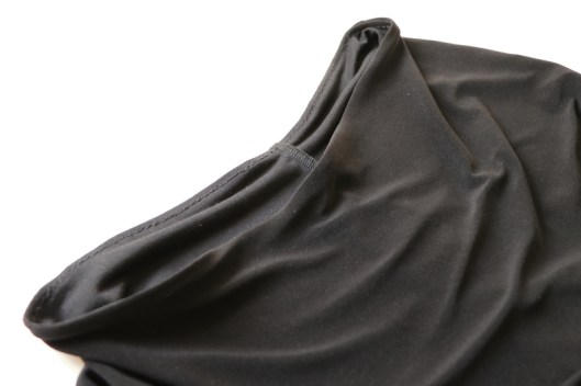 Les instructions de montage propose de tout assembler à la machine à coudre avec un point extensible. J’ai pour ma part préféré tout assembler à la surjeteuse : les coutures ne sont donc pas ouvertes mais ça ne me dérange pas plus que ça.
