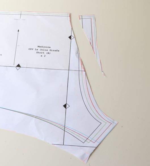 Pour le short, j’ai donc coupé le haut en taille S et le bas en ta taille L. Si vous ne savez pas comment faire, Couture & paillettes vient tout juste de sortir une vidéo très claire et ultra pédagogique que je vous recommande grandement : Comment tracer son patron entre plusieurs tailles ?