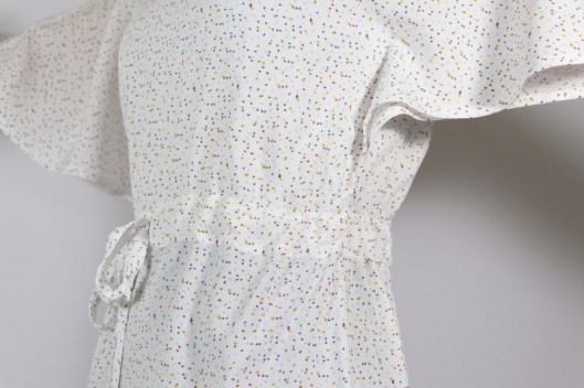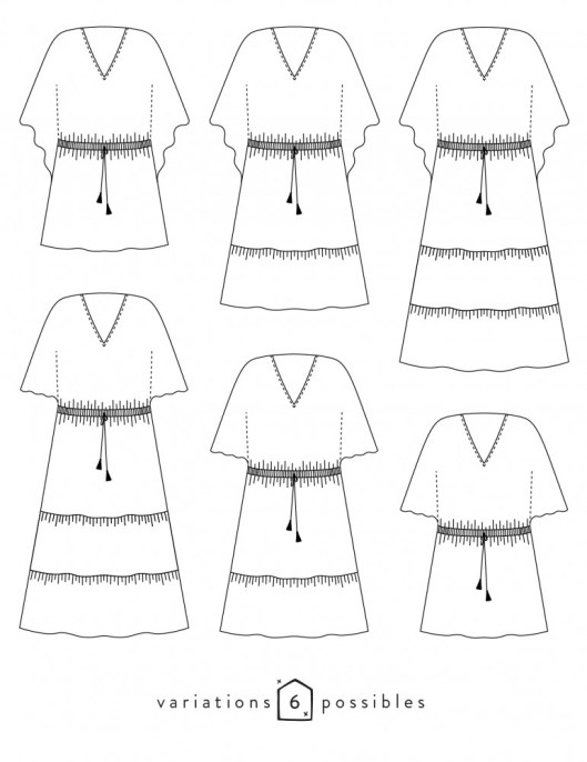 Voici la description de ce patron par la marque : « Helios est une robe à l’allure solaire. Elle est à la fois féminine par son col V et sa taille marquée, mais aussi vaporeuse avec ses jolies manches papillons réalisables en 2 longueurs. Au dos, la taille est marquée par un élastique, prolongé sur le devant par un lien à nouer, customisable à l’envie. Les 2 longueurs de manches et les 3 longueurs de robe font d’elle une pièce très versatile, allant de la petite robe de plage à une élégante tenue de cocktail. »