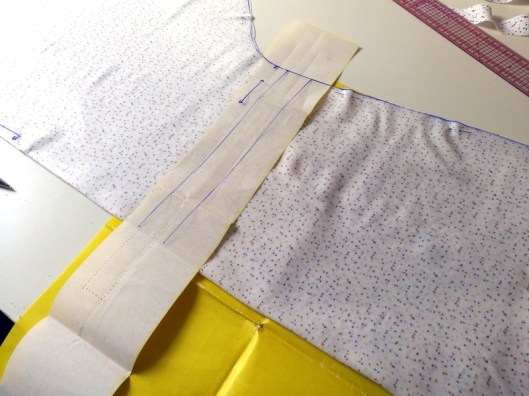 1/ L’emplacement des boutonnières/œillets n’apparait pas sur le patronage. La dimension de l’oeillet ou de la boutonnière n’est pas non plus indiquée. J’aurais aimé avoir cette information. Il est juste indiqué de découper un rectangle d’entoilage de 3 cm x 5 cm.
