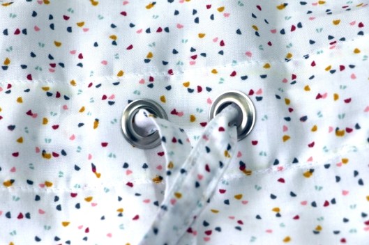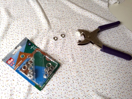 J’ai posé des œillets de la marque Prym. Je les trouve un peu gros pour une viscose aussi fine mais c’est tout ce que j’avais en stock…